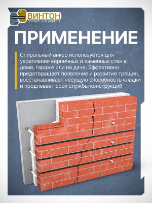 Для трещин >10 мм. Шаг укладки: 3–4 кирпича (возможно уменьшение при критичных повреждениях).